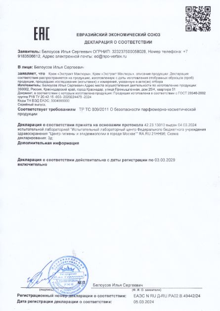 Производимый нами крем для наружного применения "Экстракт Маклюры" имеет все необходимые разрешительные документы. Крем выпускается в соответствии с Техническими условиями.